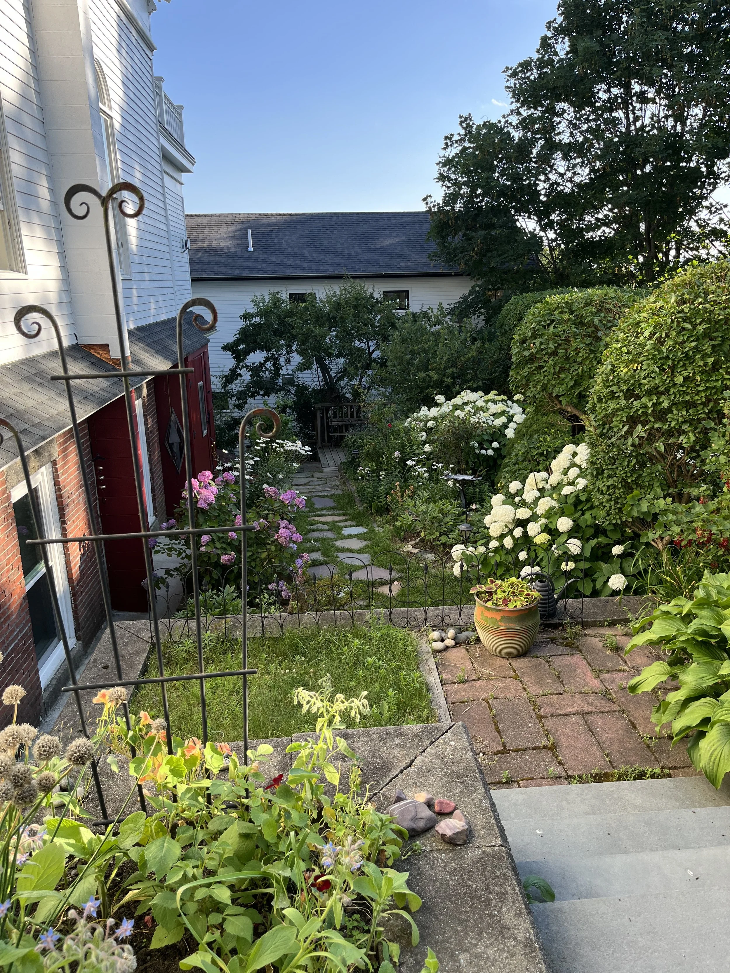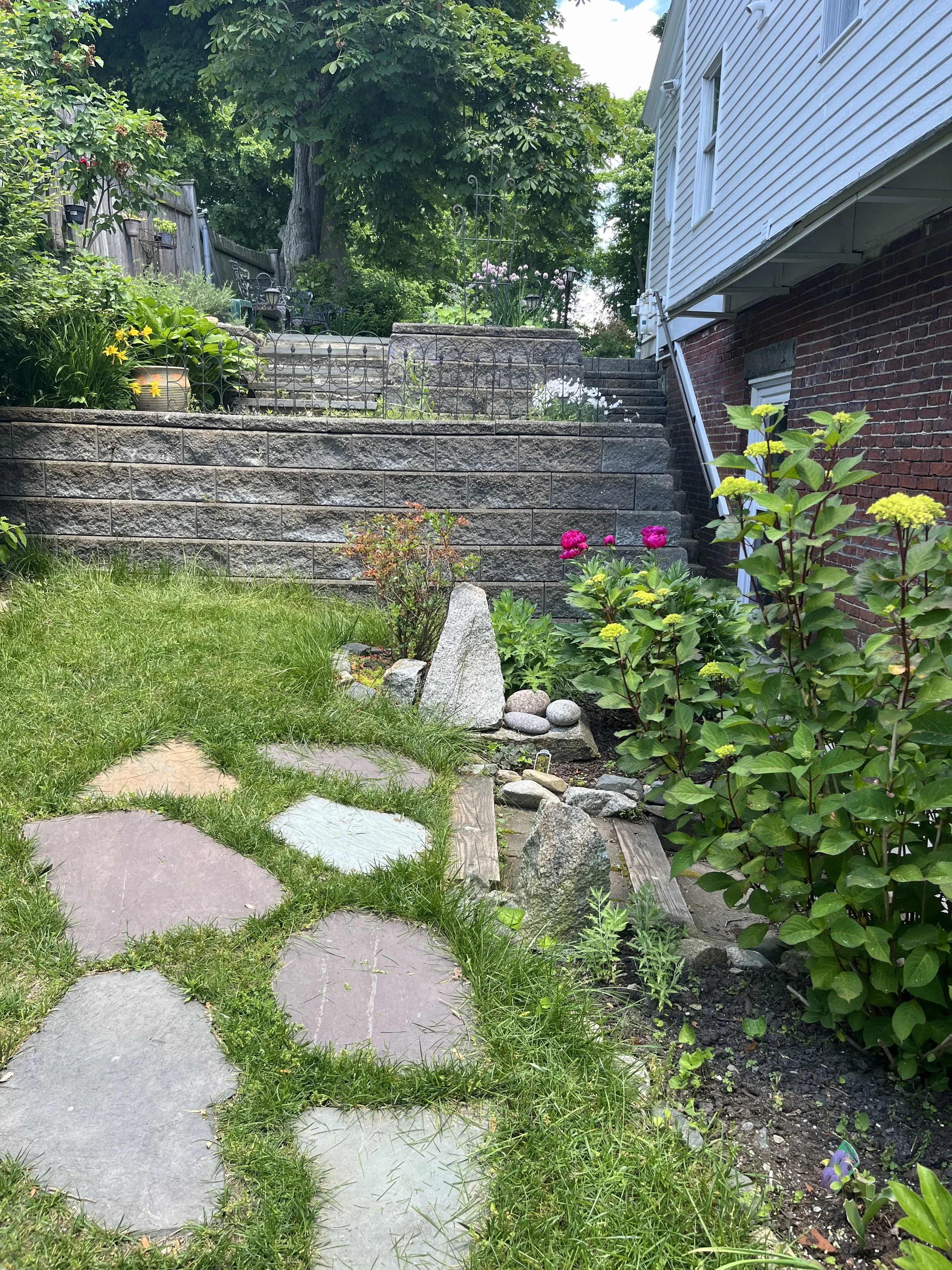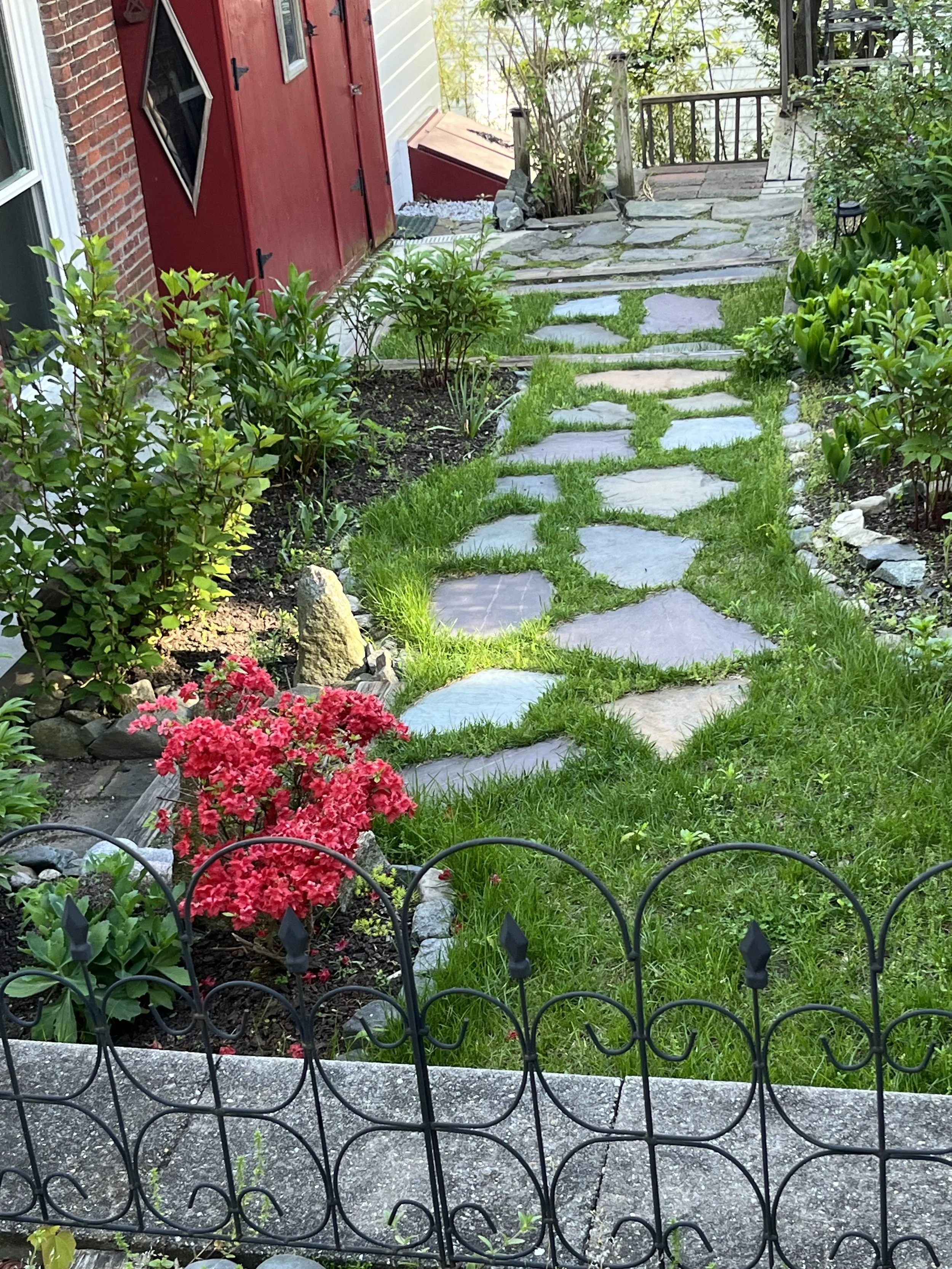 • Flower beds are built and filled with perennial plantings; three large trees removed