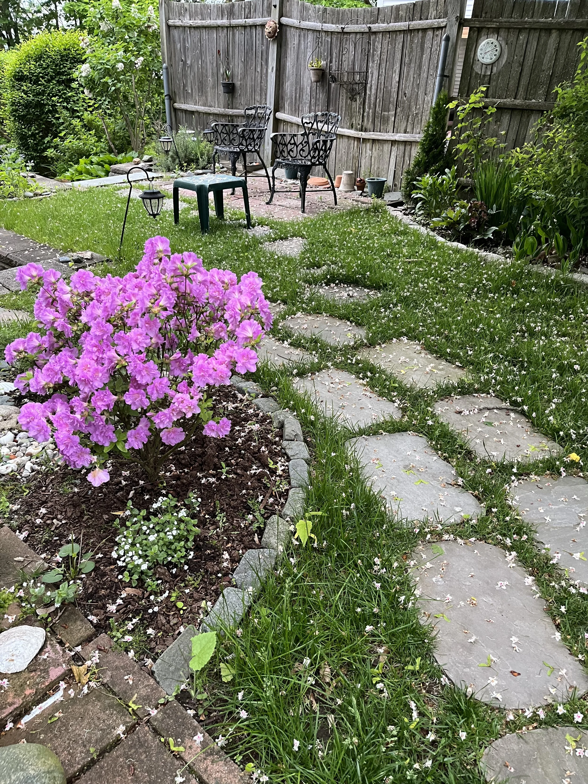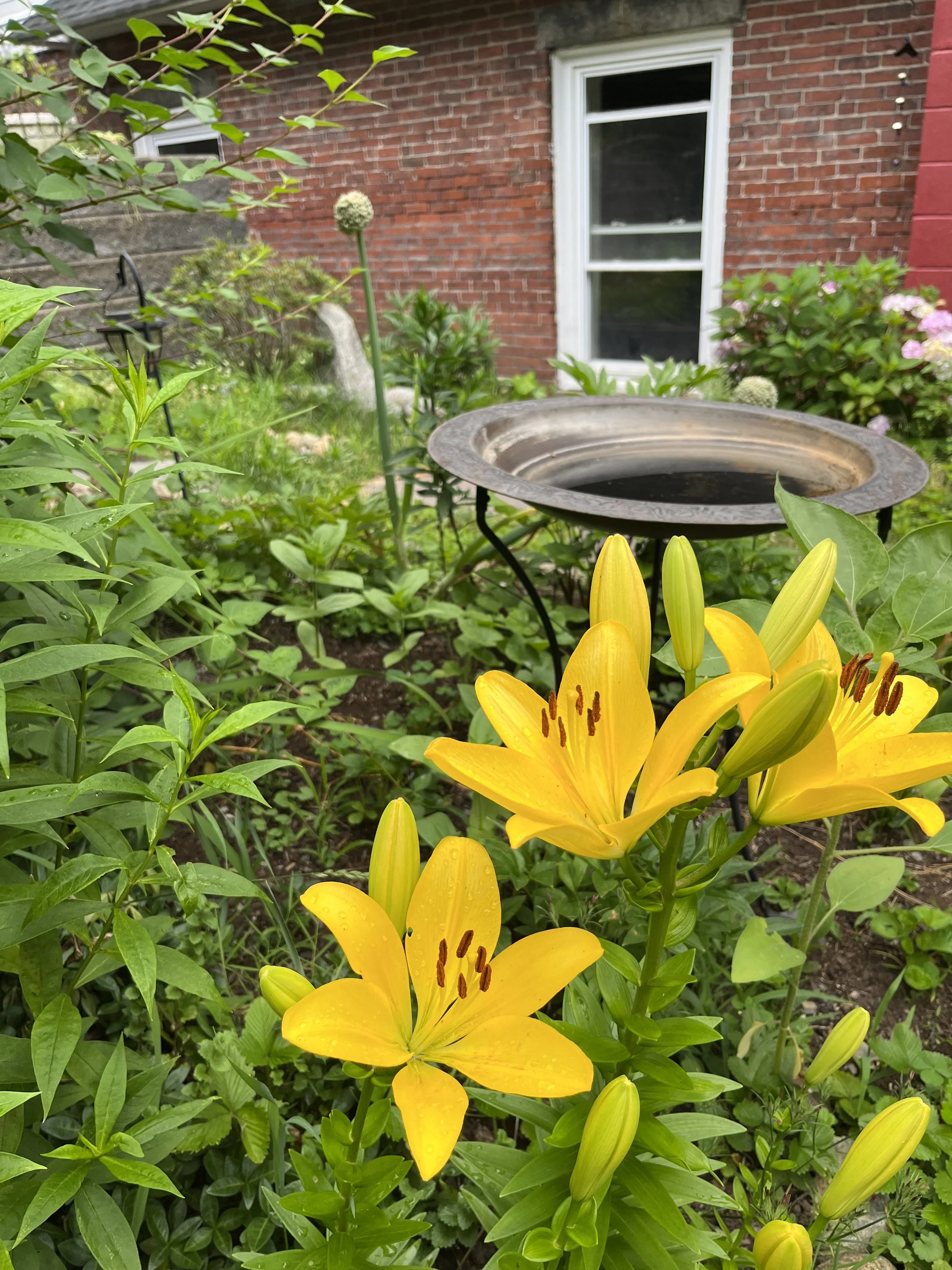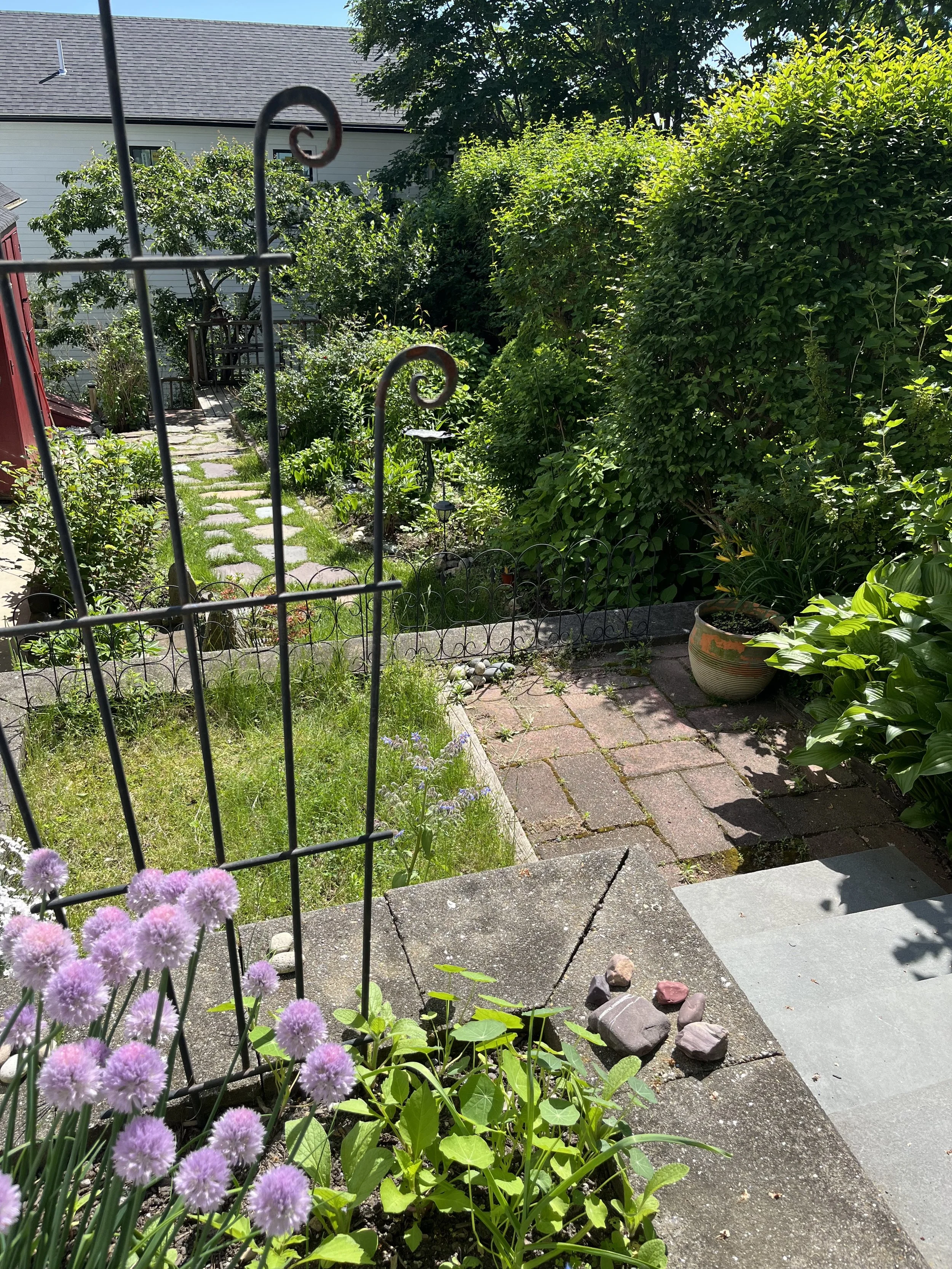 • Flower beds are built and filled with perennial plantings; three large trees removed