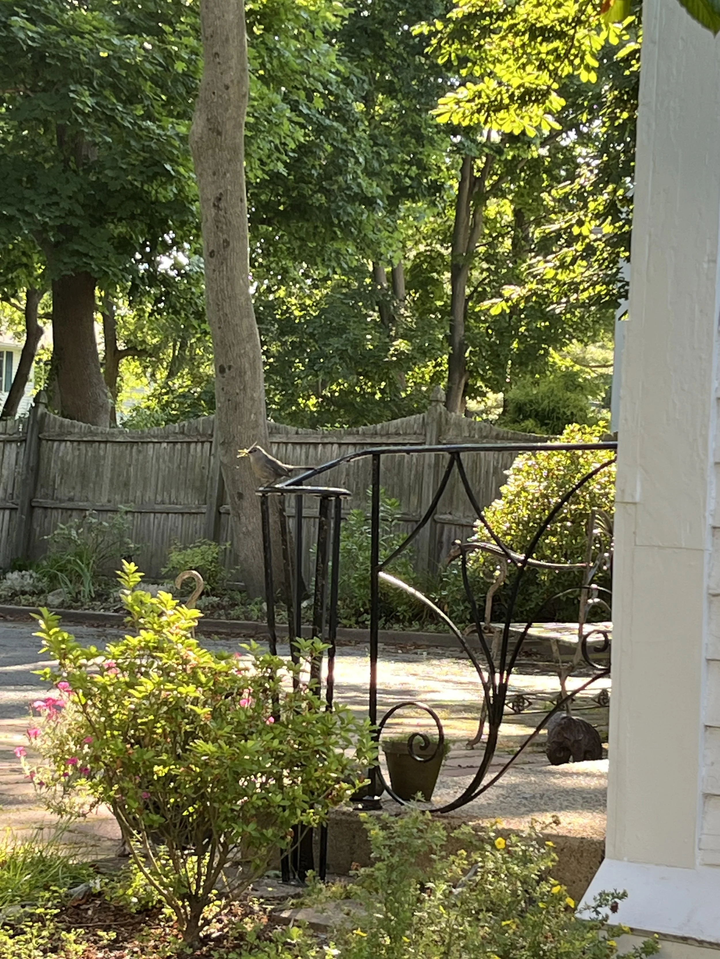 • Outdoor storage closet, shed, overpass storage added to yard, wrought iron railing